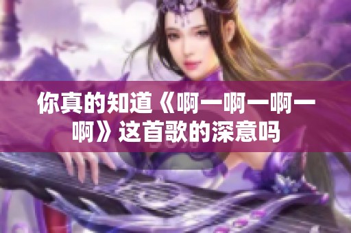 你真的知道《啊一啊一啊一啊》这首歌的深意吗